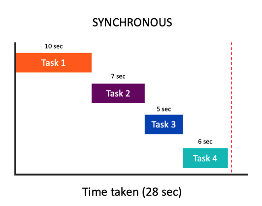 μ΄μ μμ μ΄ μλ£λμ΄μΌ λ€μ μμ μ μνν μ μλ€. μ΄λ¬ν μ½λ μμ°¨ μ€νμ λκΈ°(Synchronous)λΌκ³ νλ€.